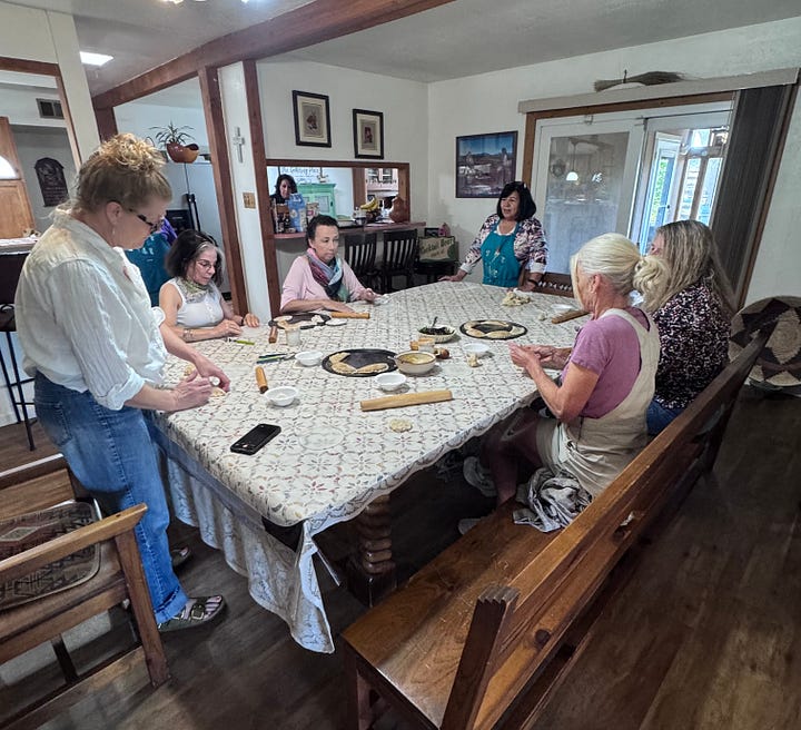 From there we moved on to a deep dive of Georgia O’Keeffe who it turns out, was a complete badass, starting her life over in the desert at age 61. All I knew prior to this was the coochie flowers that she swears were not coochies. But those were her early works. The bulk of her art was New Mexico landscapes at Ghost Ranch and surrounding areas. We stood at her most famous painting sites on Ghost Ranch, comparing prints of her work with the real-life landscape before us. We toured her home in Abiquiú — it took her 10 years to convince the Catholic church to let her buy the hacienda ruins from them, then another three years to have it painstakingly restored by another badass woman, Maria Chabot. Marie Chabot was a time traveler - simultaneously ahead of her time, deeply linked to the traditions of the past and yet still grounded in the present. Restoring the home meant simultaneously restoring the entire community of Abiquiú but it was a passion project for O’Keeffe because she wanted to grow her own food — to know exactly where all her food was coming from and have control of the the quality of the soil as recommended by nutritionist Adelle Davis, yet another badass woman far ahead of her time.