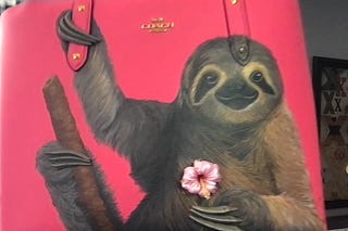 Slothy goodness hand painted on a Coach tote